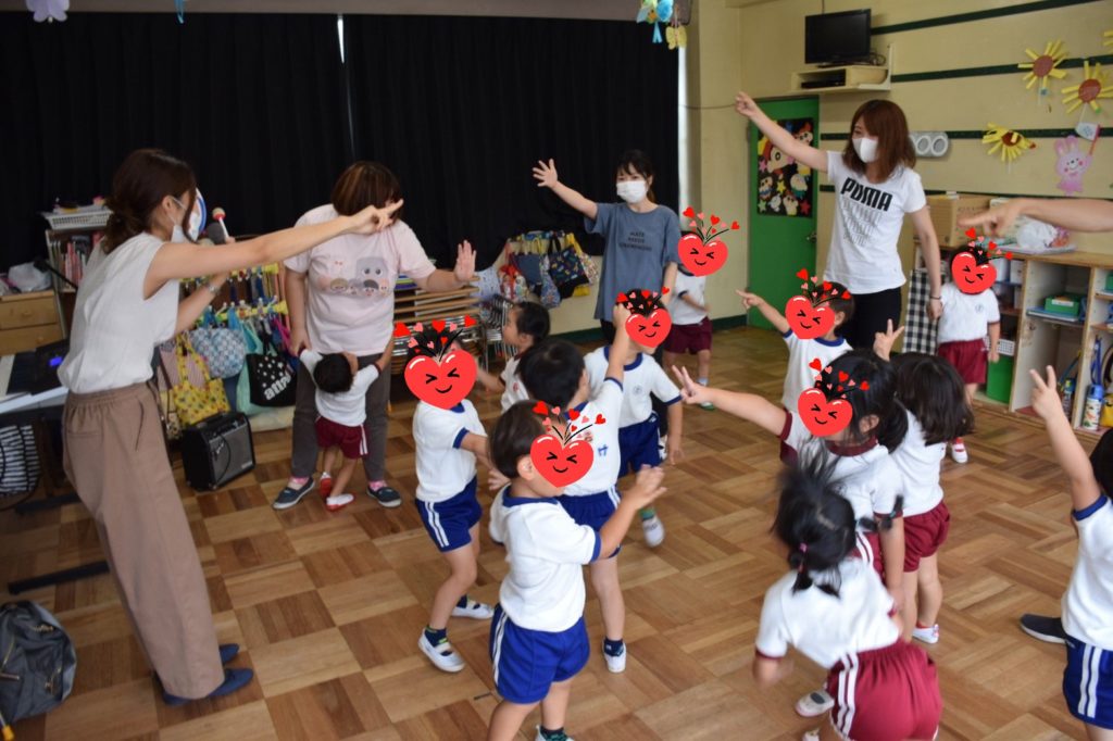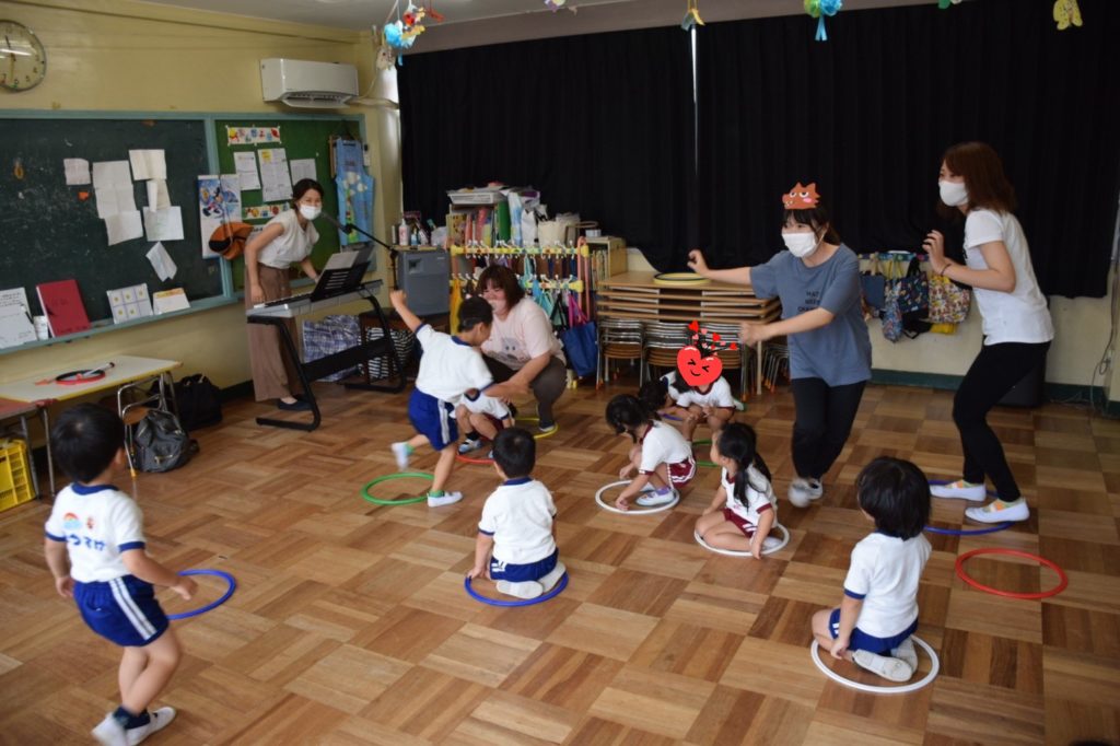 園内リトミックでは保育士の先生方がたくさん盛り上げてくださいました。