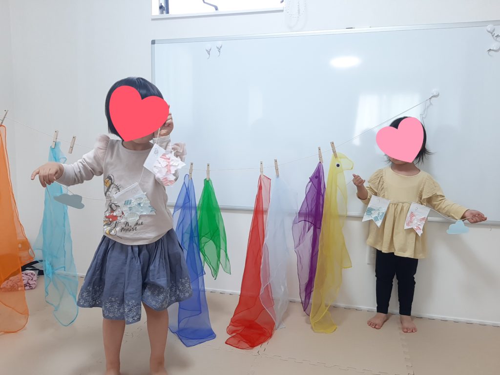 制作活動では和紙を使ってこいのぼりのガーランドを作りました💖